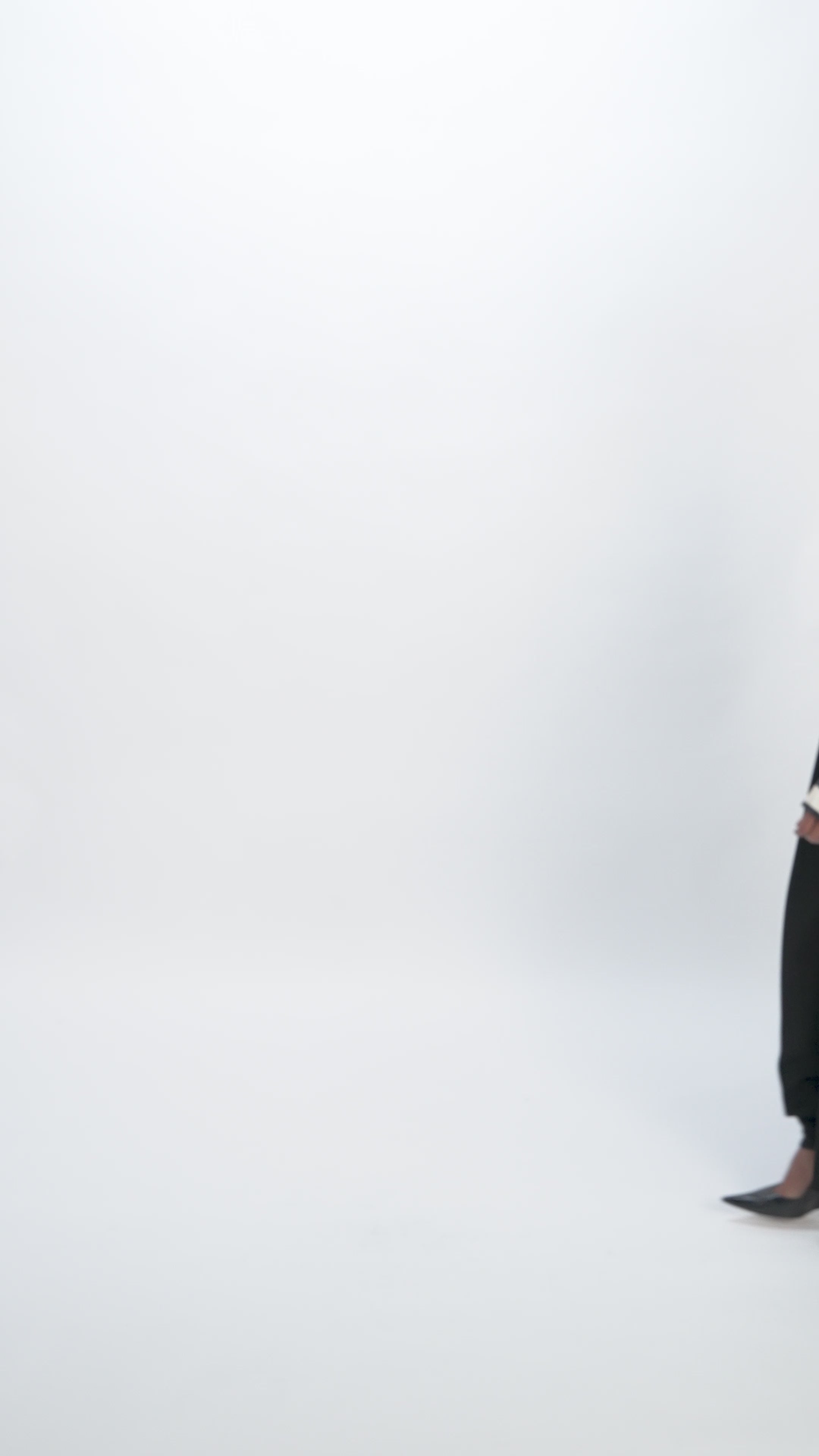 - يأتي بأكمام مخططة باللونين الأسود والأبيض مع أزرار أكمام معدنية