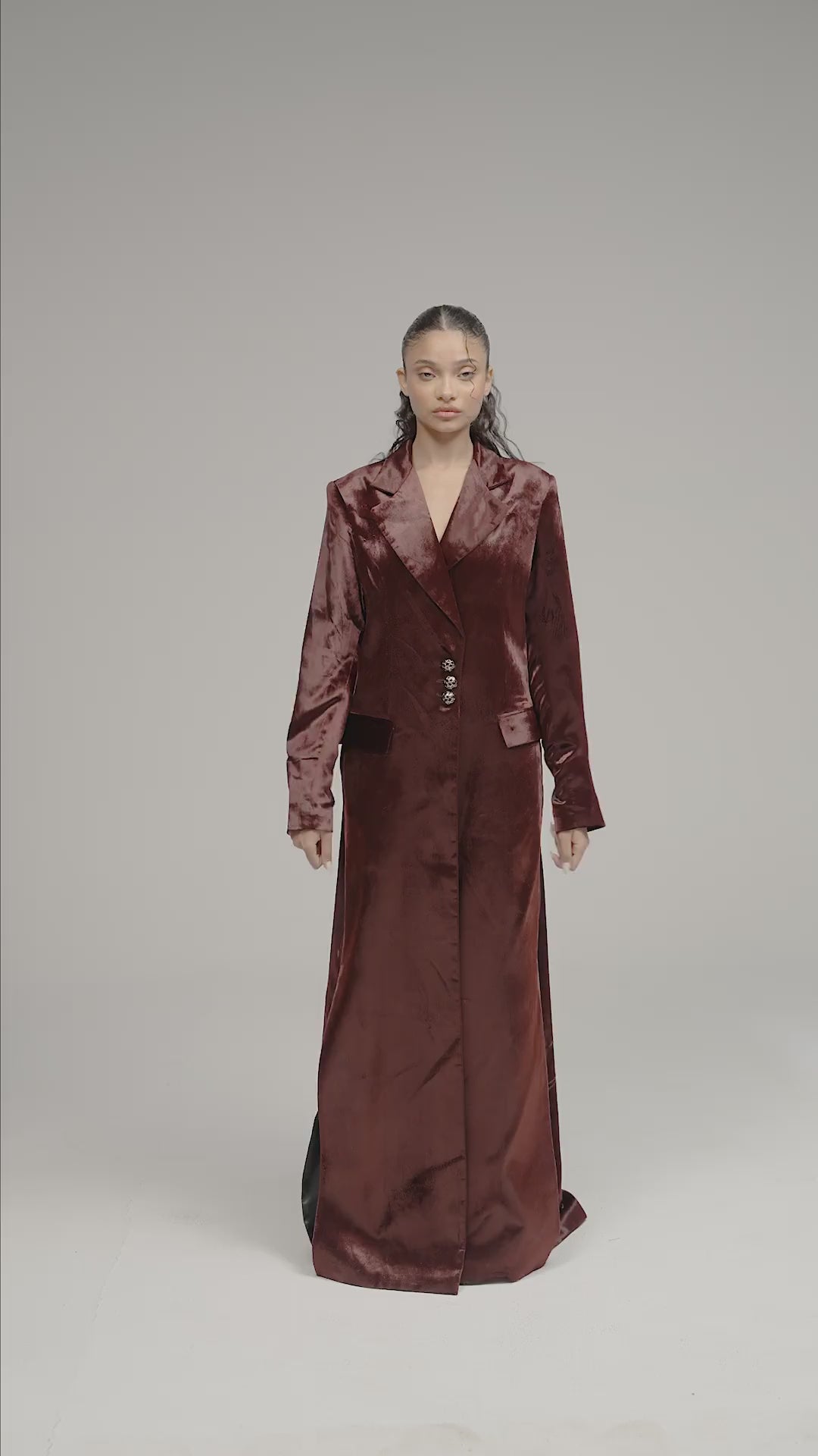 - عباية مصممة بشكل أنيق من المخمل الناعم.