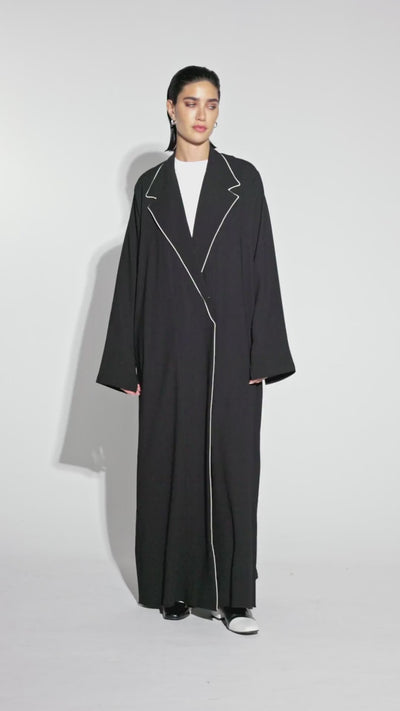 - طية صدر السترة ذات شق مع حواف ملونة مفصلة