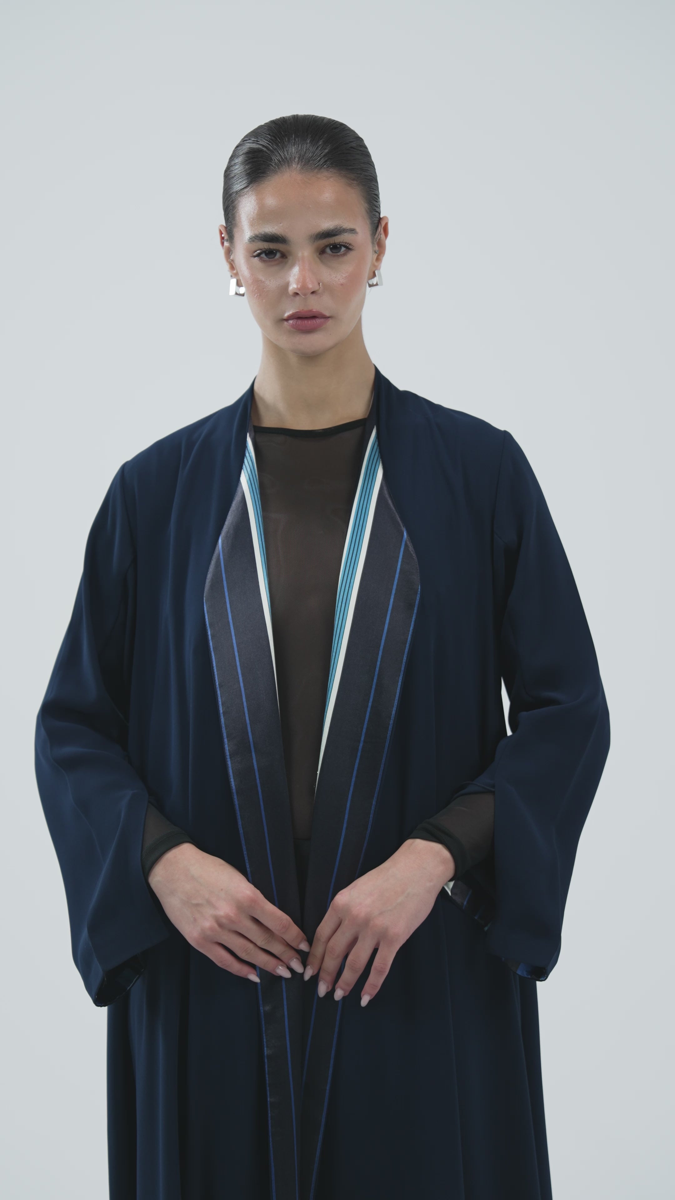 The In Between Lines Abaya is a bold take on classic black. At first glance, its silhouette is sleek and minimal — but hidden within are colorful inner details that peek through with movement, offering a refined surprise. This thoughtful contrast transforms the piece into a quiet statement, perfect for those who appreciate subtle expression with impact.